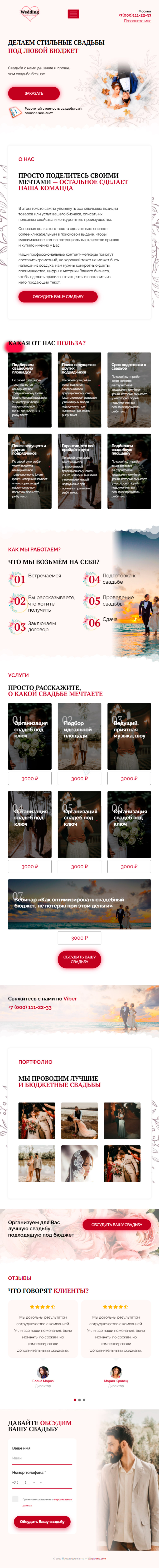 Закажите готовый продающий сайт лендинг #0440206 в Воронеже за 1-3 дня «под ключ»: свёрстан, отрисован и готов к рекламе. Тематика шаблона «Организация свадеб».