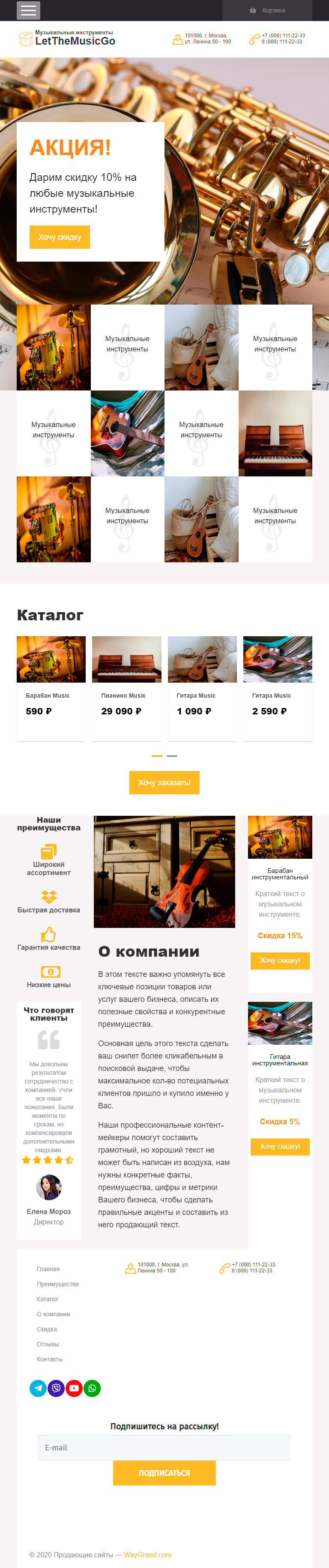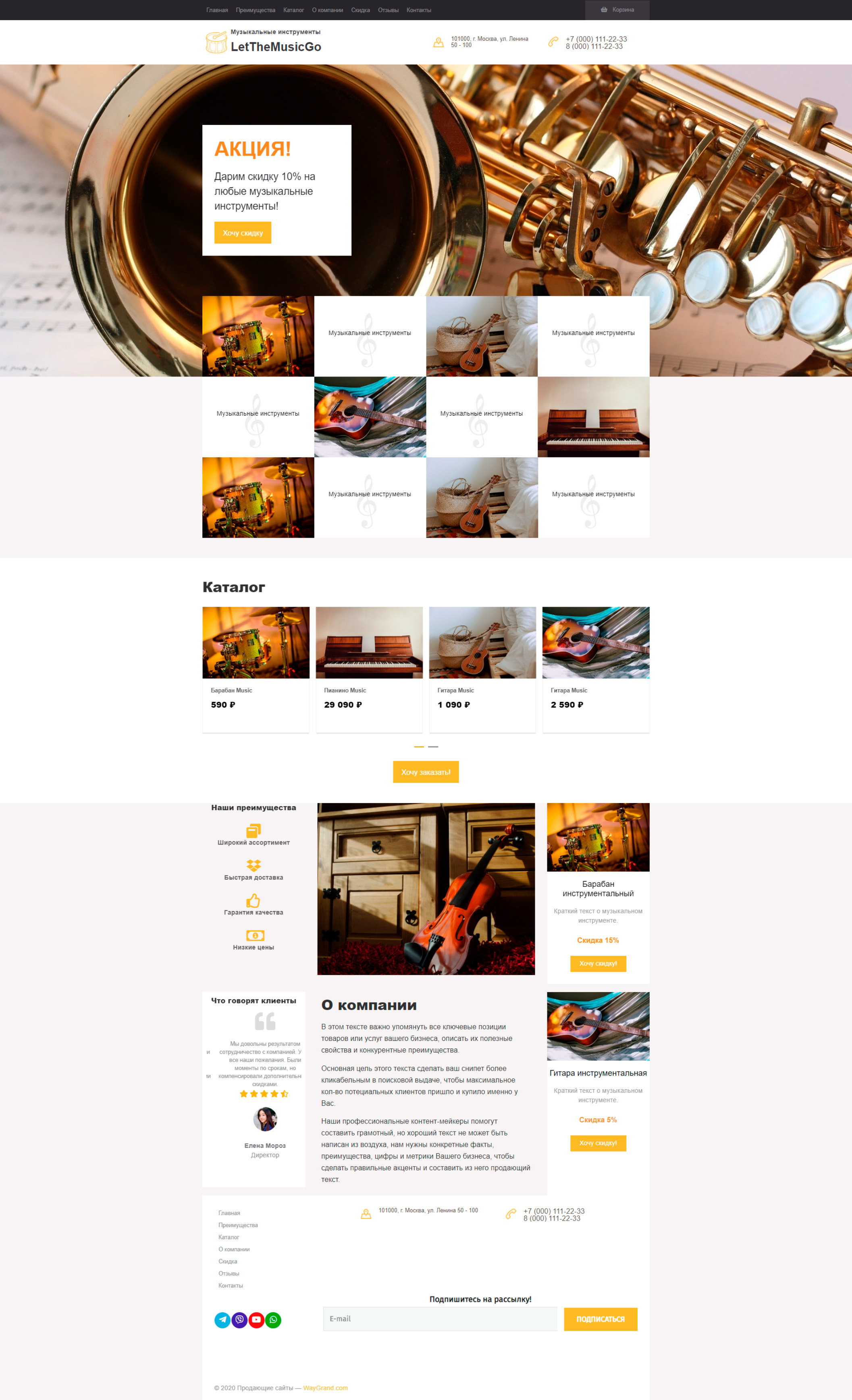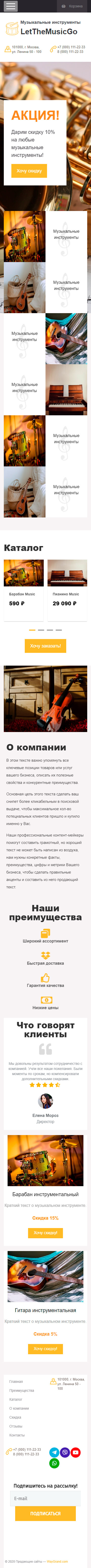 Закажите готовый продающий сайт лендинг #0710201 в Воронеже за 1-3 дня «под ключ»: свёрстан, отрисован и готов к рекламе. Тематика шаблона «Музыкальные инструменты».