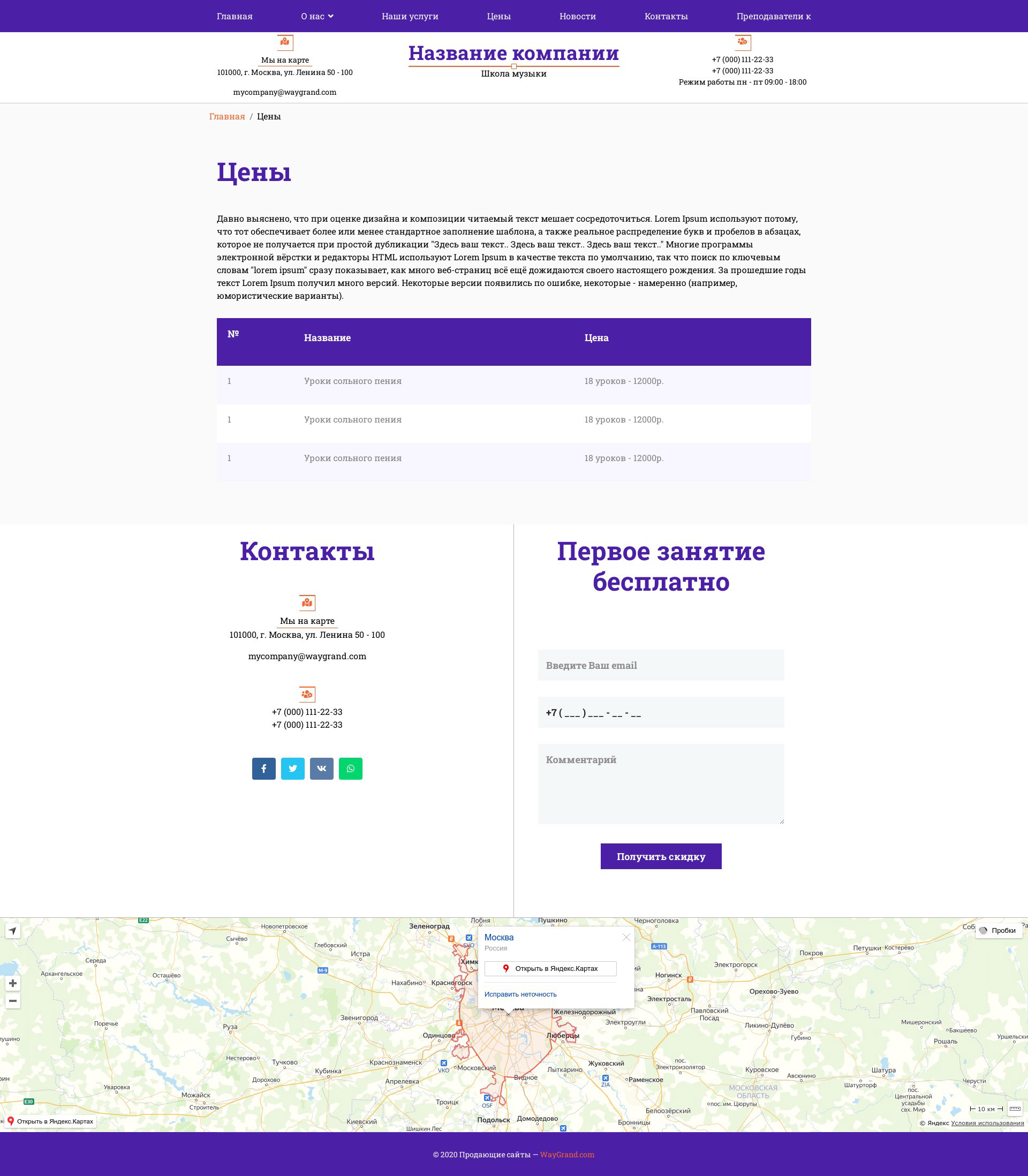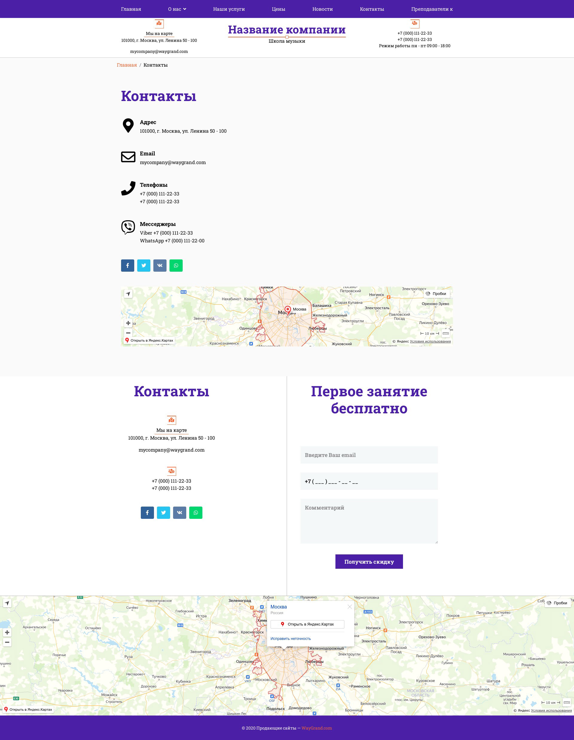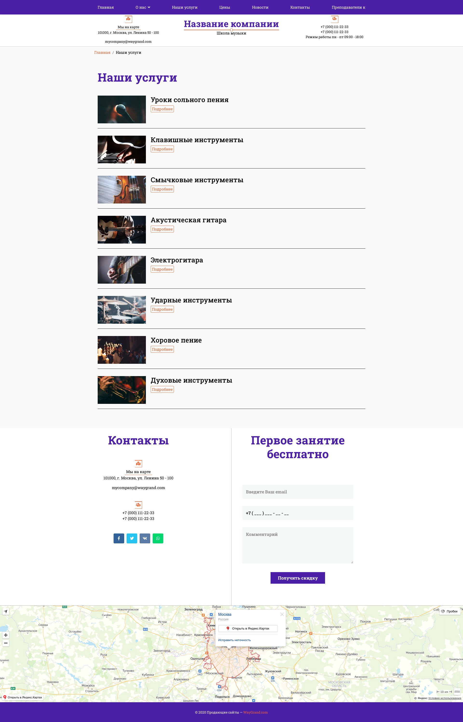 Закажите готовый продающий сайт визитка #1431301 в Воронеже за 5-7 дня «под ключ»: свёрстан, отрисован и готов к рекламе. Тематика шаблона «Школа музыки».