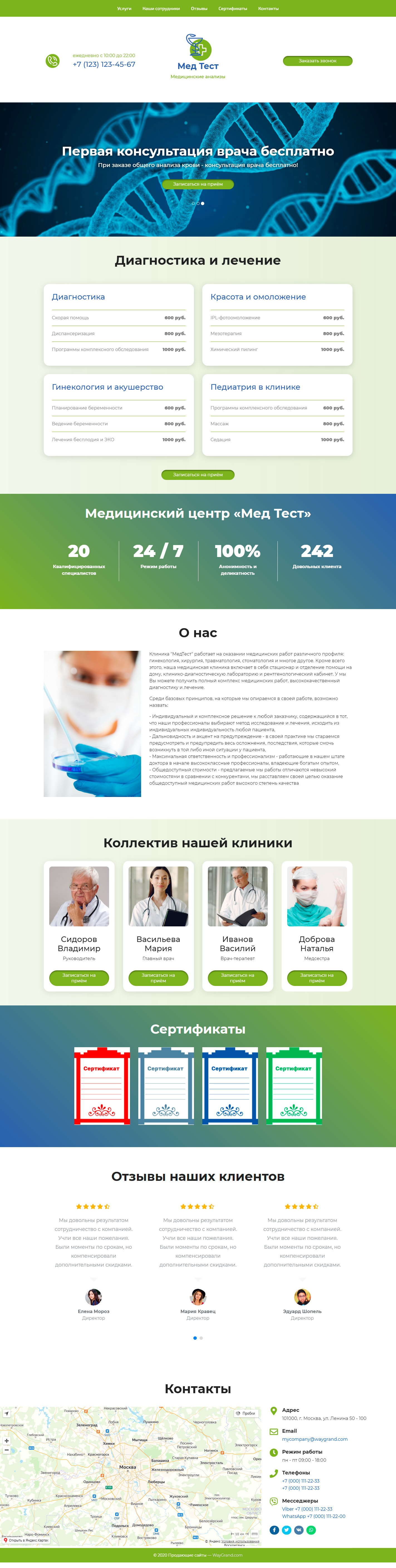 Закажите готовый продающий сайт лендинг #1025201 в Воронеже за 1-3 дня «под ключ»: свёрстан, отрисован и готов к рекламе. Тематика шаблона «Медицинские анализы».