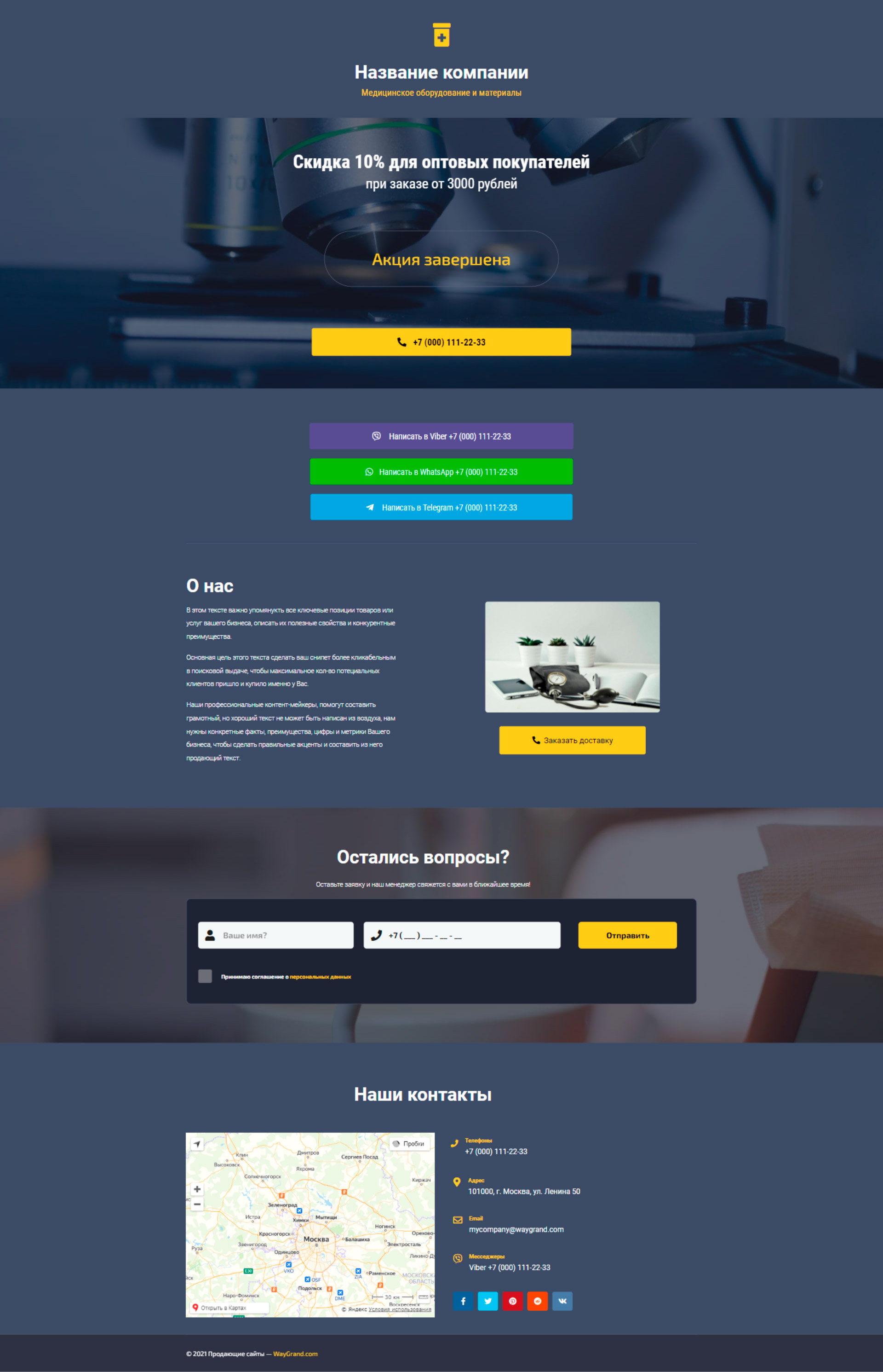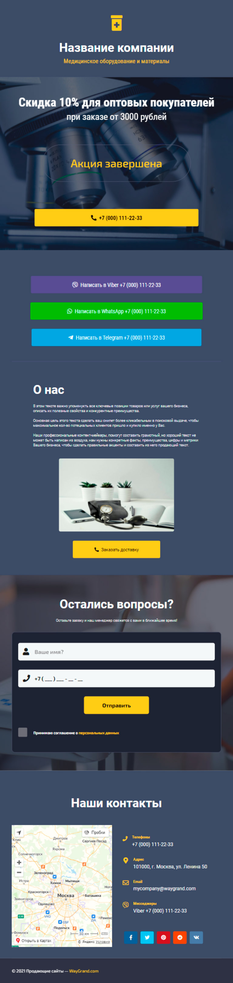 Закажите готовый продающий сайт визитка #1027101 в Воронеже за 5-7 дня «под ключ»: свёрстан, отрисован и готов к рекламе. Тематика шаблона «Медицинское оборудование и материалы».
