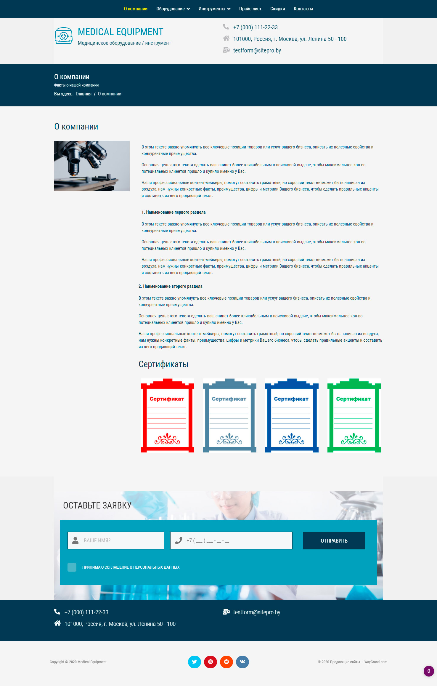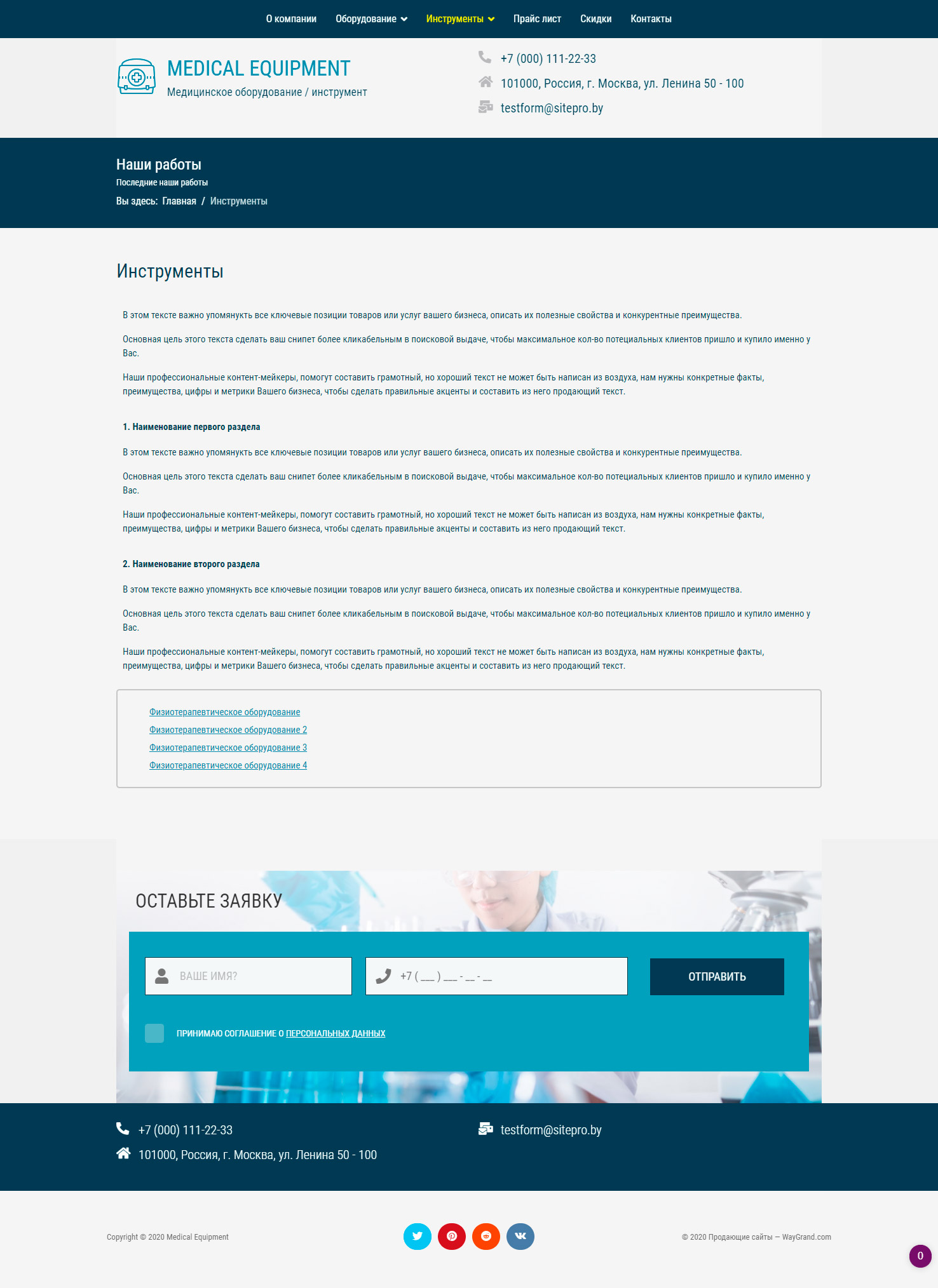 Закажите готовый продающий сайт визитка #1029301 в Воронеже за 5-7 дня «под ключ»: свёрстан, отрисован и готов к рекламе. Тематика шаблона «Медицинское оборудование / инструмент».