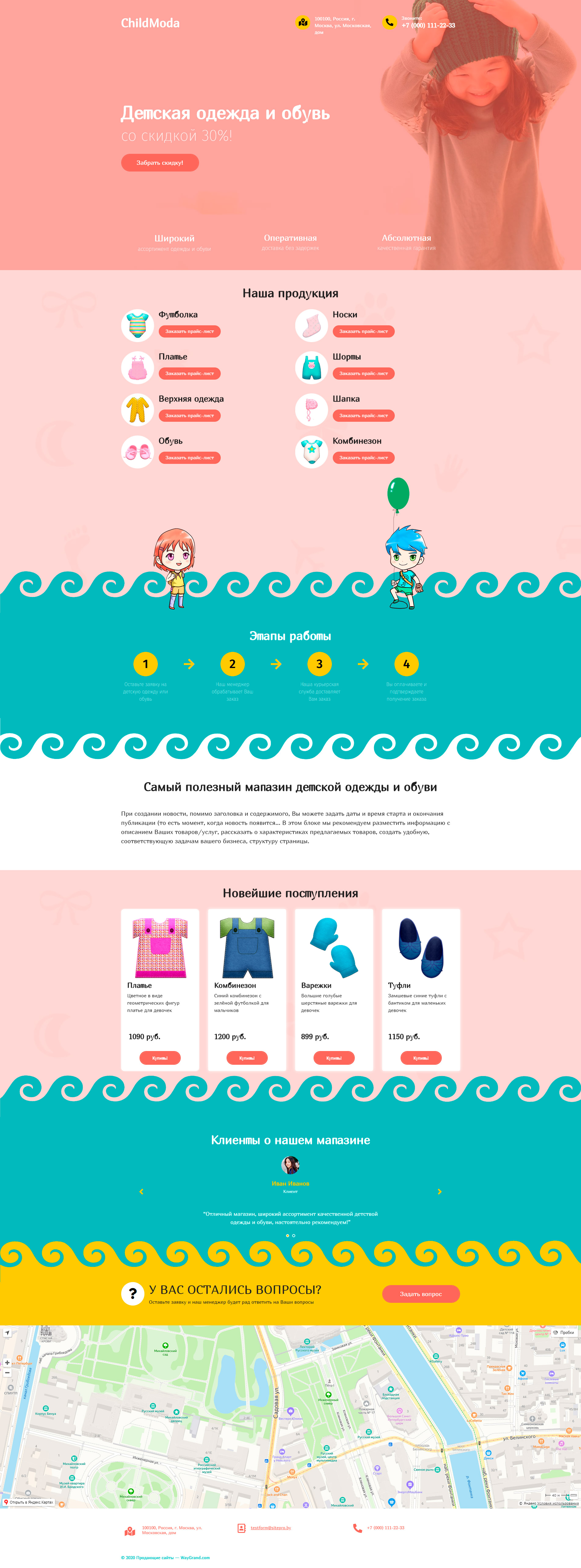 Закажите готовый продающий сайт лендинг #1506201 в Воронеже за 1-3 дня «под ключ»: свёрстан, отрисован и готов к рекламе. Тематика шаблона «Детская одежда и обувь».
