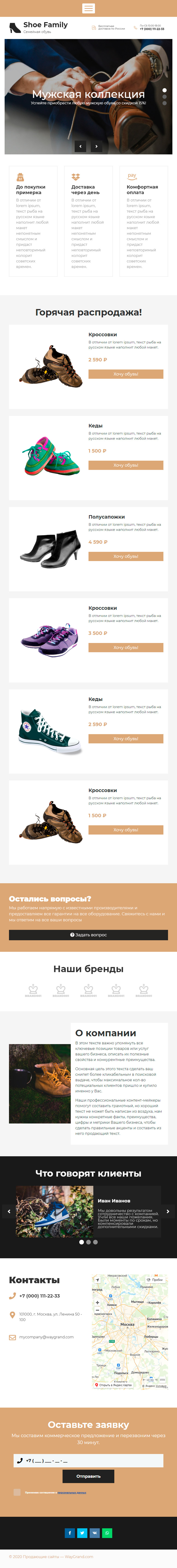 Закажите готовый продающий сайт лендинг #1517201 в Воронеже за 1-3 дня «под ключ»: свёрстан, отрисован и готов к рекламе. Тематика шаблона «Обувь».