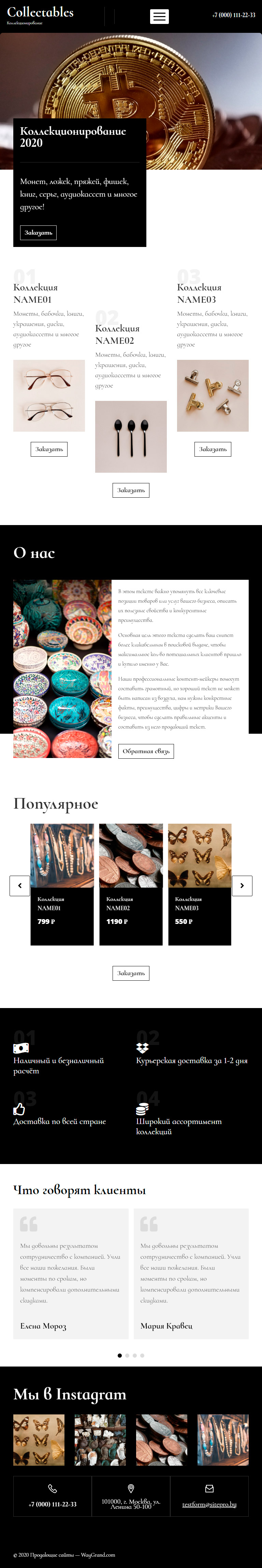 Закажите готовый продающий сайт лендинг #0801201 в Воронеже за 1-3 дня «под ключ»: свёрстан, отрисован и готов к рекламе. Тематика шаблона «Коллекционирование».