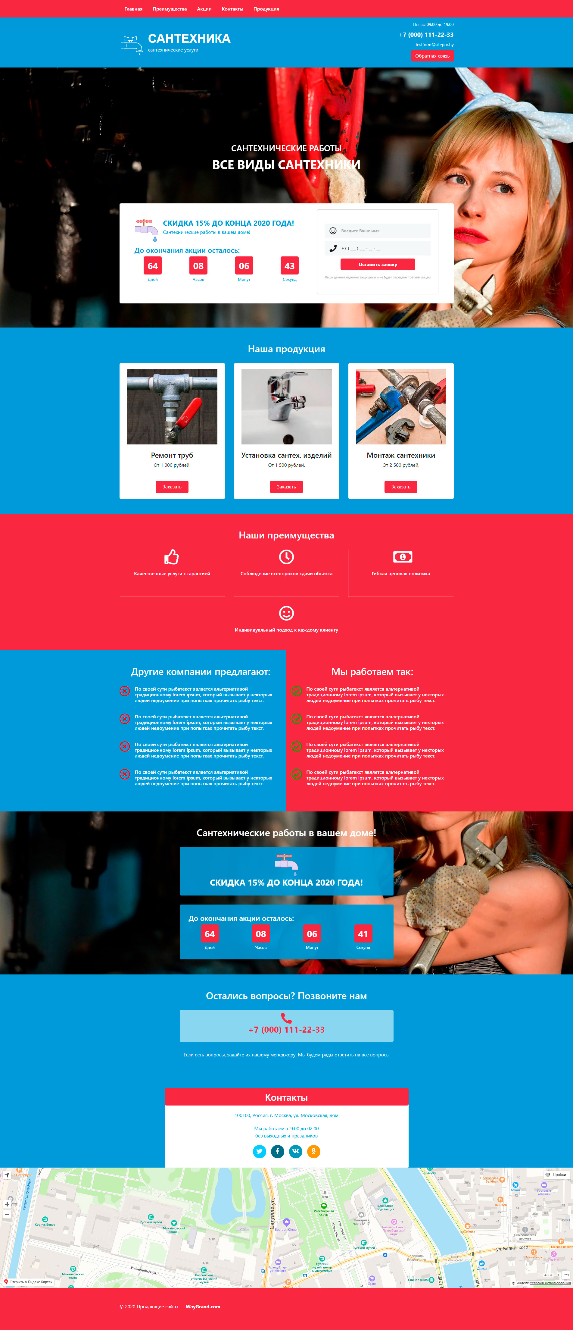 Закажите готовый продающий сайт лендинг #2158202 в Воронеже за 1-3 дня «под ключ»: свёрстан, отрисован и готов к рекламе. Тематика шаблона «Сантехника».