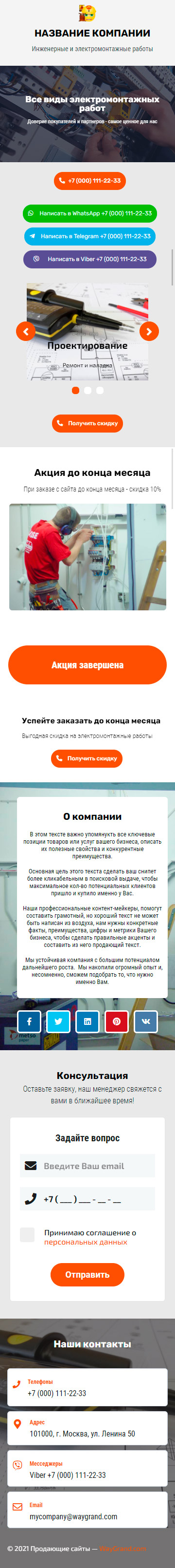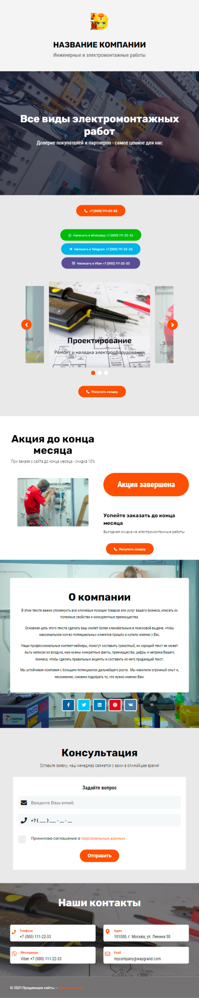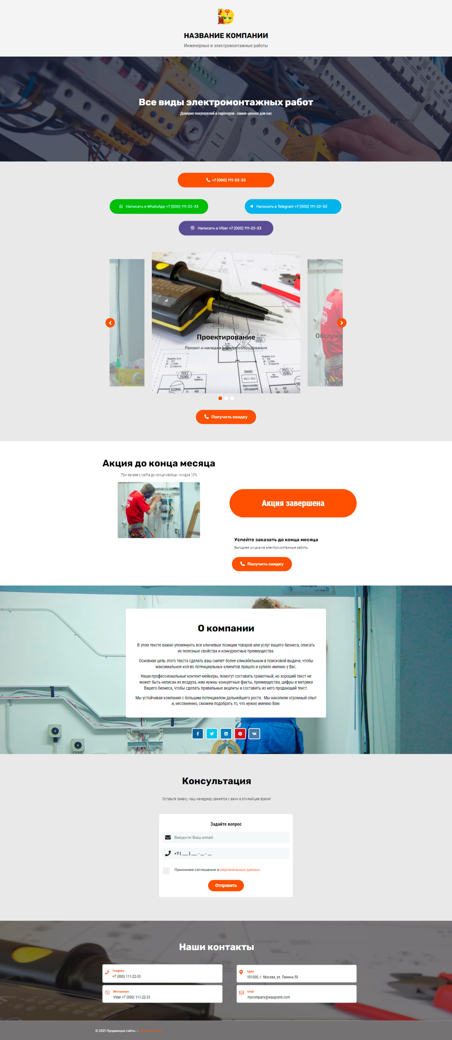 Закажите готовый продающий сайт визитка #2189101 в Воронеже за 5-7 дня «под ключ»: свёрстан, отрисован и готов к рекламе. Тематика шаблона «Инженерные и электромонтажные работы».
