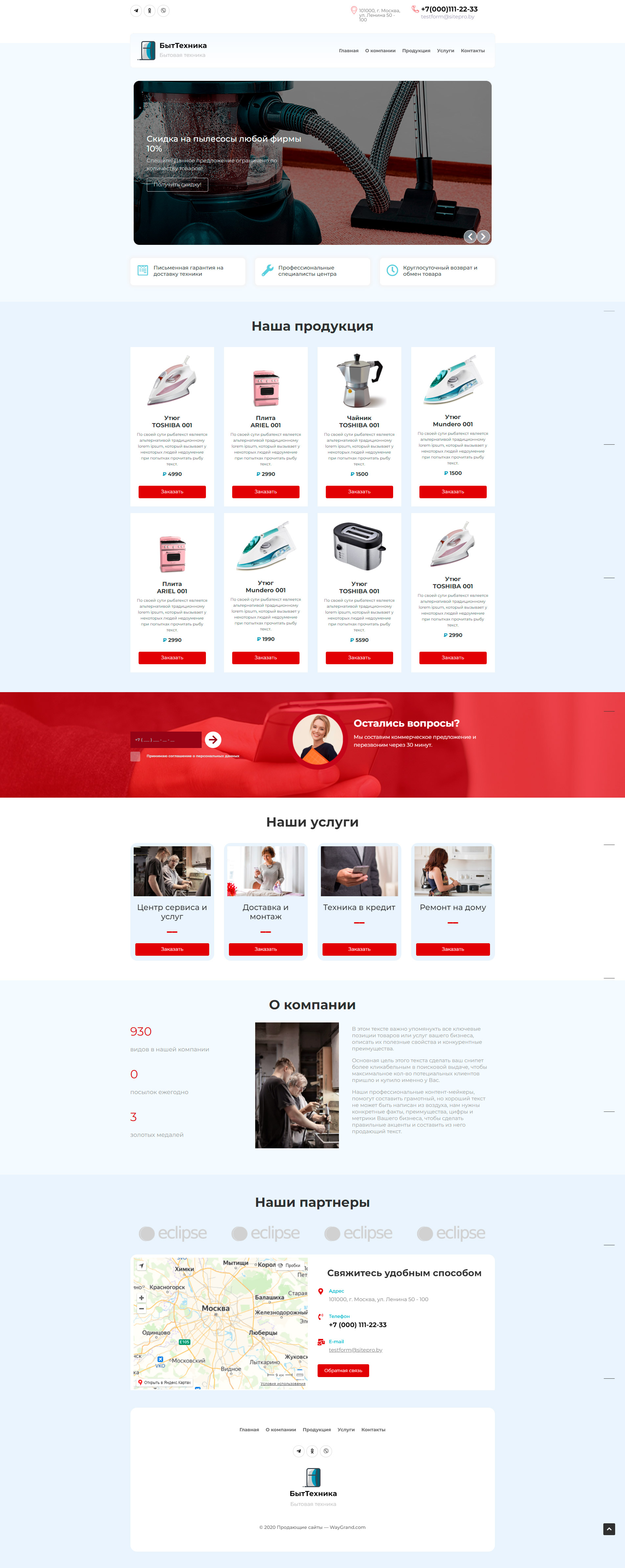Закажите готовый продающий сайт лендинг #0703201 в Воронеже за 1-3 дня «под ключ»: свёрстан, отрисован и готов к рекламе. Тематика шаблона «Продажа бытовой техники».