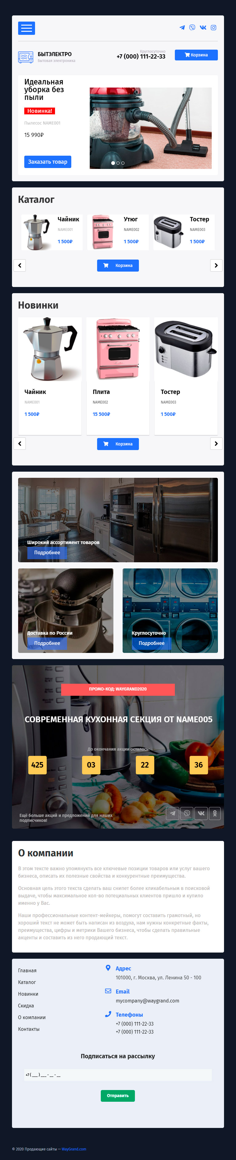 Закажите готовый продающий сайт лендинг #0703202 в Воронеже за 1-3 дня «под ключ»: свёрстан, отрисован и готов к рекламе. Тематика шаблона «Продажа бытовой электроники».