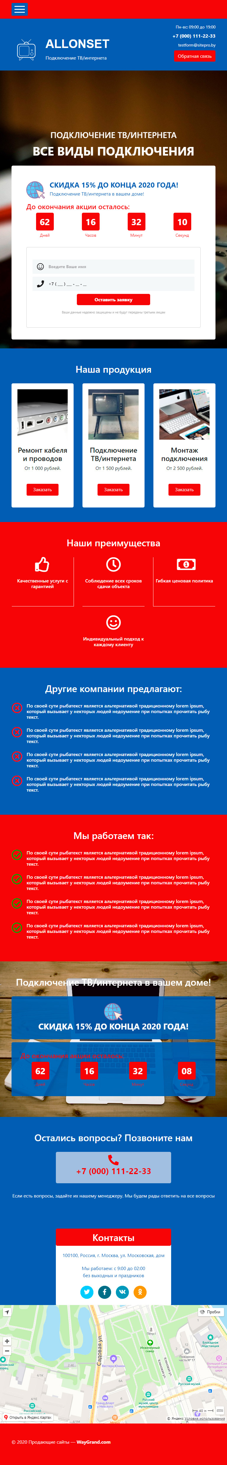 Закажите готовый продающий сайт лендинг #0718201 в Воронеже за 1-3 дня «под ключ»: свёрстан, отрисован и готов к рекламе. Тематика шаблона «Подключение ТВ/интернета».