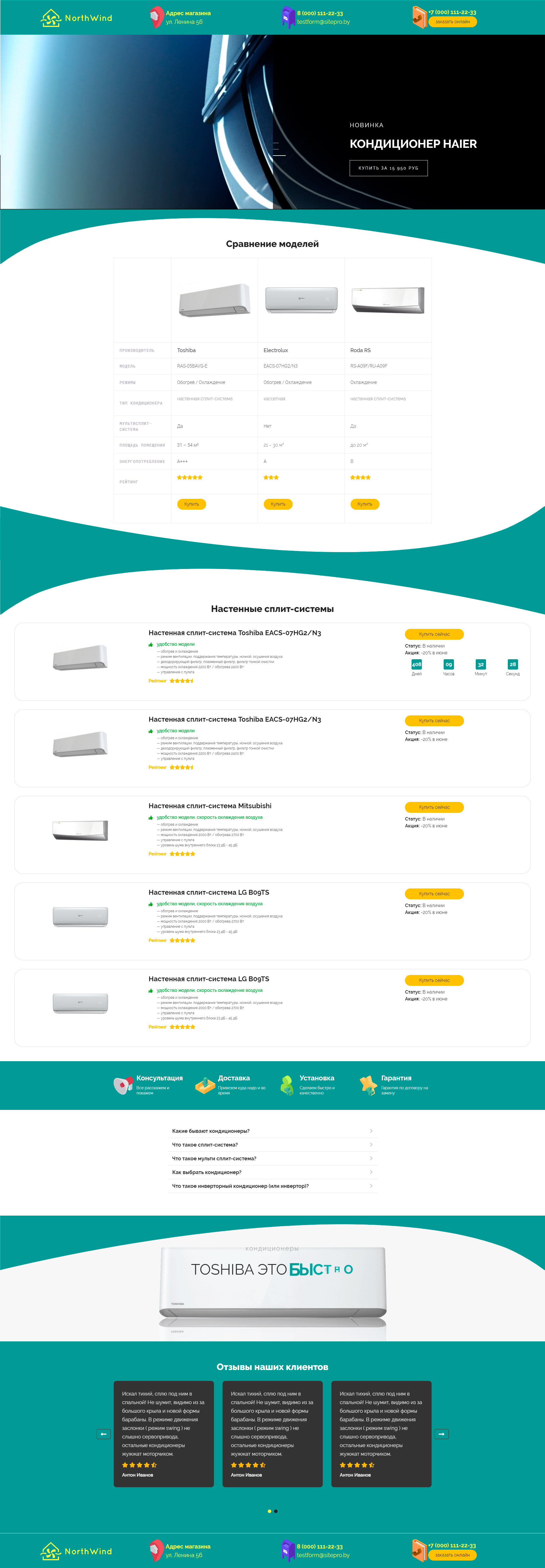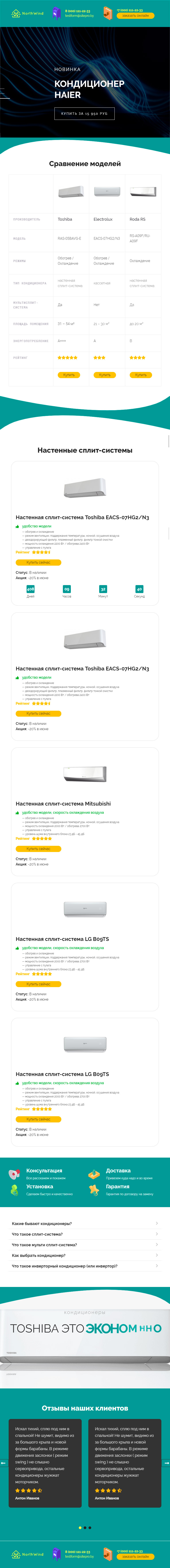 Закажите готовый продающий сайт лендинг #1323201 в Воронеже за 1-3 дня «под ключ»: свёрстан, отрисован и готов к рекламе. Тематика шаблона «Кондиционеры».