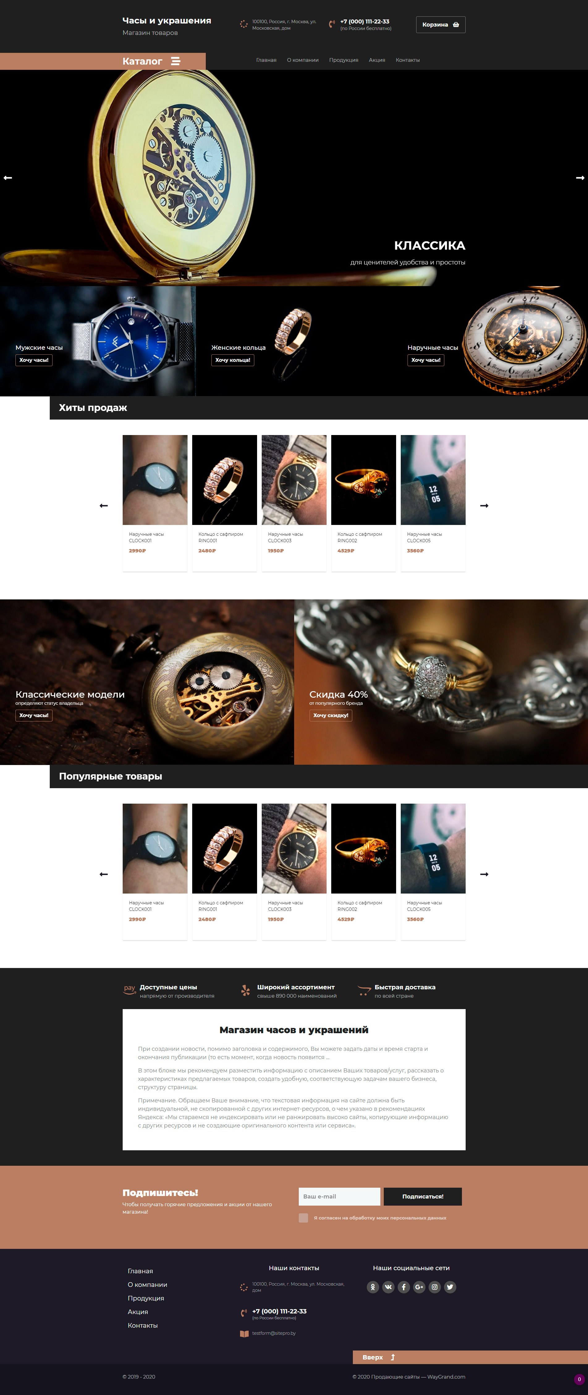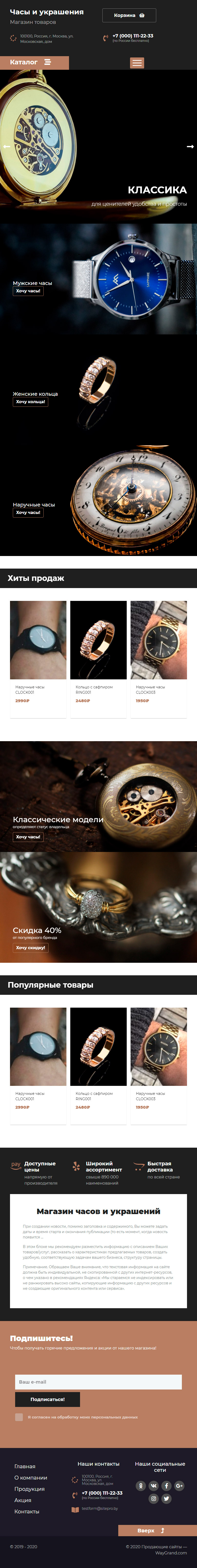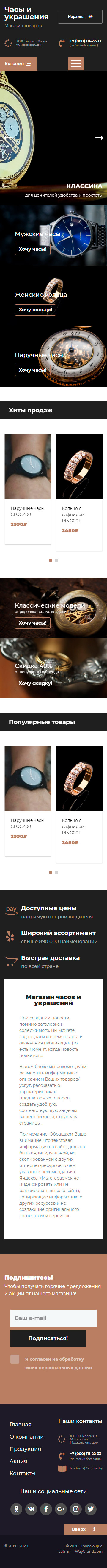 Закажите готовый продающий сайт лендинг #2437201 в Воронеже за 1-3 дня «под ключ»: свёрстан, отрисован и готов к рекламе. Тематика шаблона «Часы и украшения».