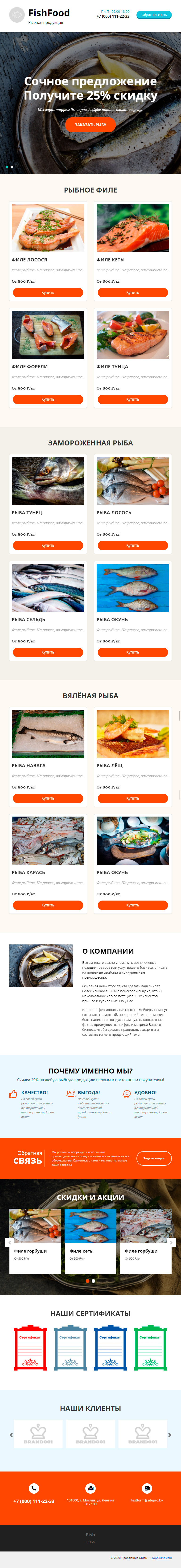 Закажите готовый продающий сайт лендинг #1731201 в Воронеже за 1-3 дня «под ключ»: свёрстан, отрисован и готов к рекламе. Тематика шаблона «Рыбная продукция».