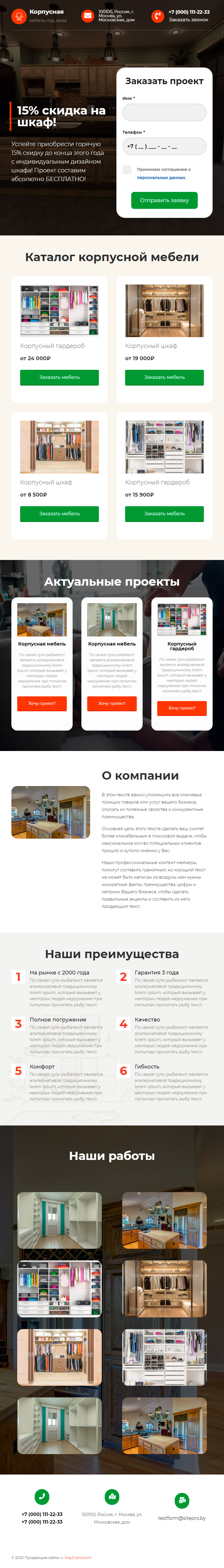 Закажите готовый продающий сайт лендинг #0915204 в Воронеже за 1-3 дня «под ключ»: свёрстан, отрисован и готов к рекламе. Тематика шаблона «Корпусная мебель».