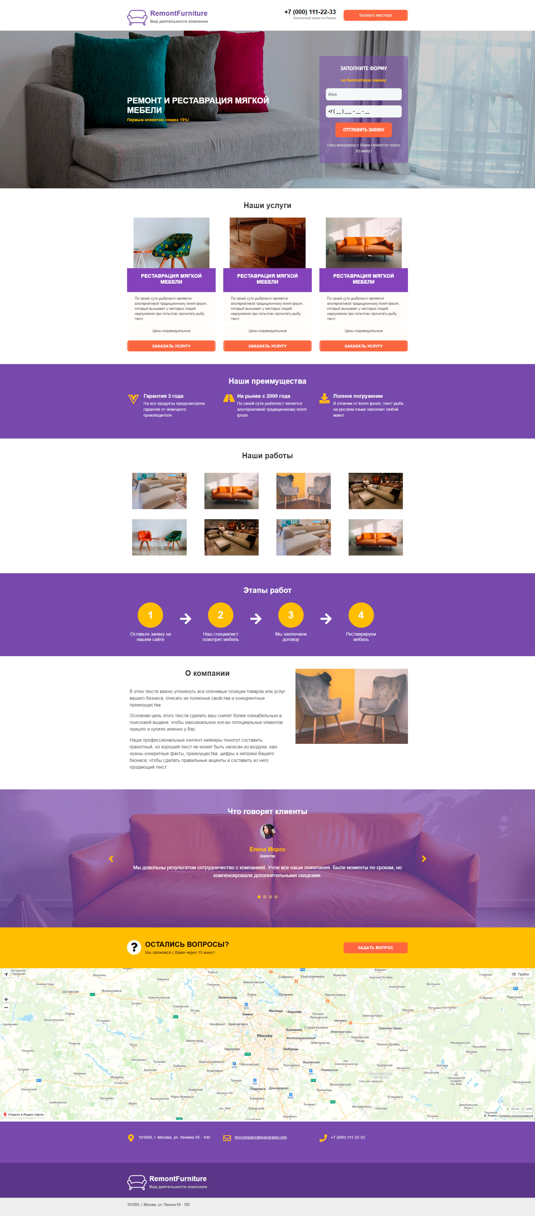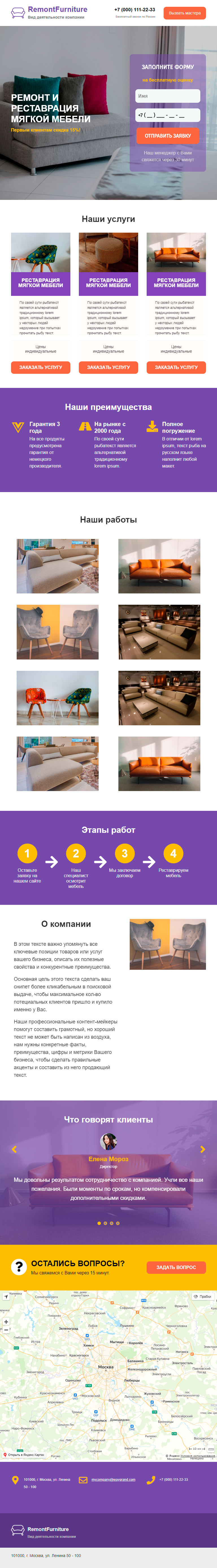 Закажите готовый продающий сайт лендинг #0924201 в Воронеже за 1-3 дня «под ключ»: свёрстан, отрисован и готов к рекламе. Тематика шаблона «Ремонт и реставрация мебели».