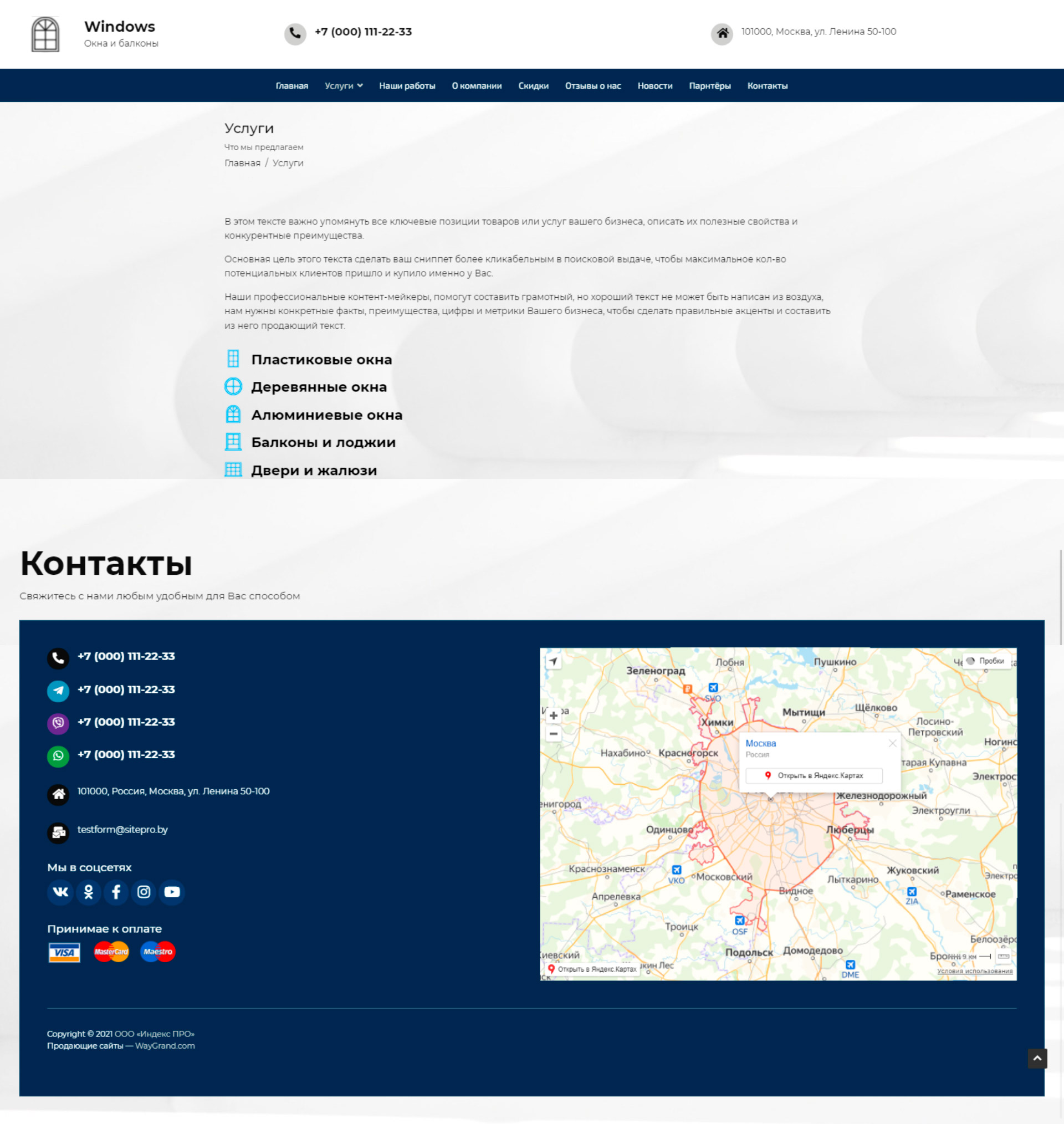 Закажите готовый продающий сайт визитка #2034302 в Воронеже за 5-7 дня «под ключ»: свёрстан, отрисован и готов к рекламе. Тематика шаблона «Окна и балконы».