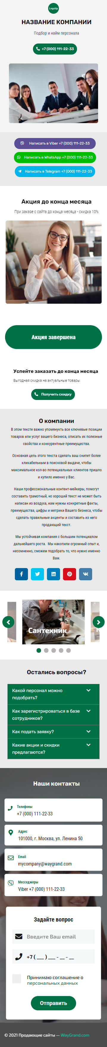 Закажите готовый продающий сайт визитка #1415101 в Воронеже за 5-7 дня «под ключ»: свёрстан, отрисован и готов к рекламе. Тематика шаблона «Подбор и найм персонала».