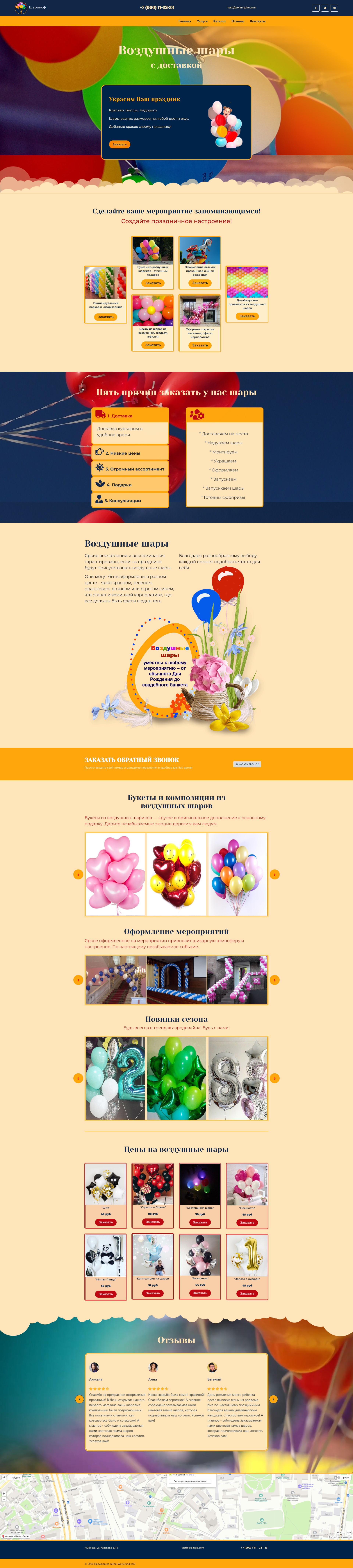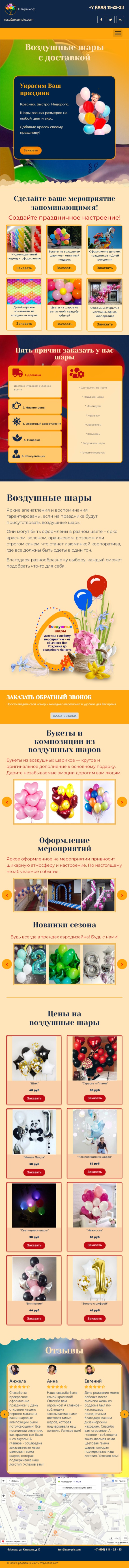 Закажите готовый продающий сайт лендинг #2427202 в Воронеже за 1-3 дня «под ключ»: свёрстан, отрисован и готов к рекламе. Тематика шаблона «Воздушные шары».