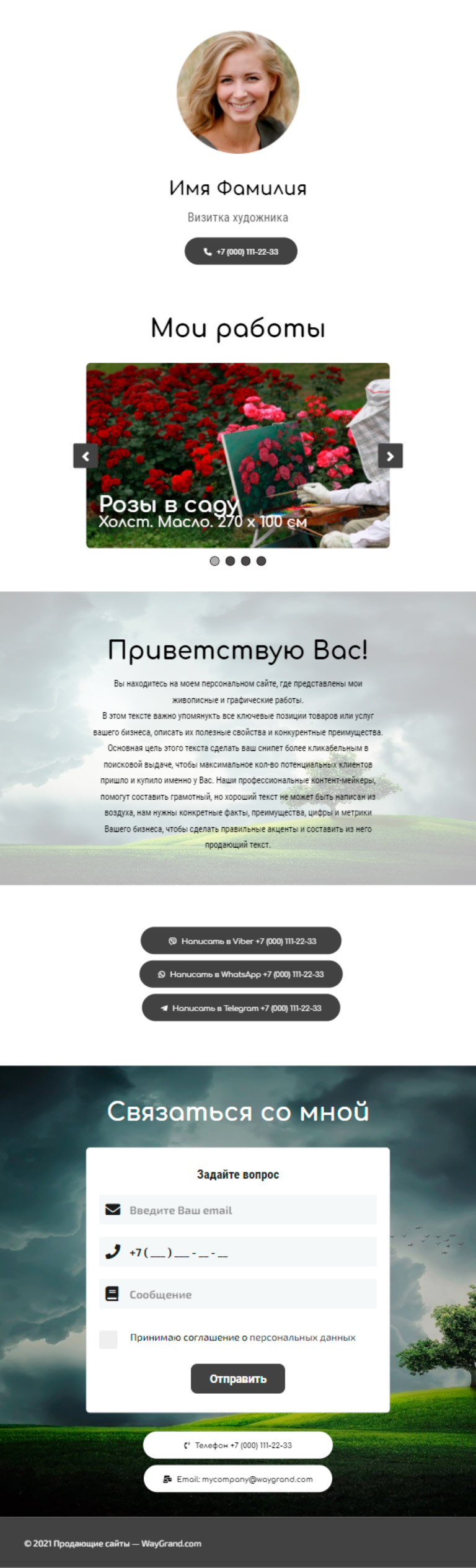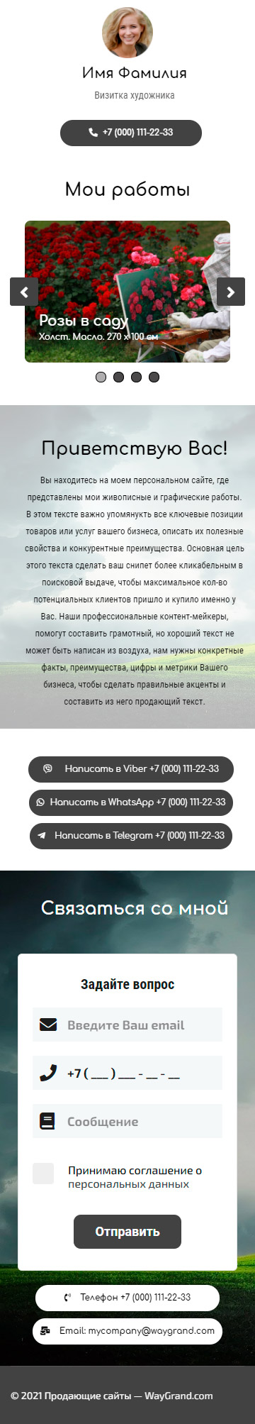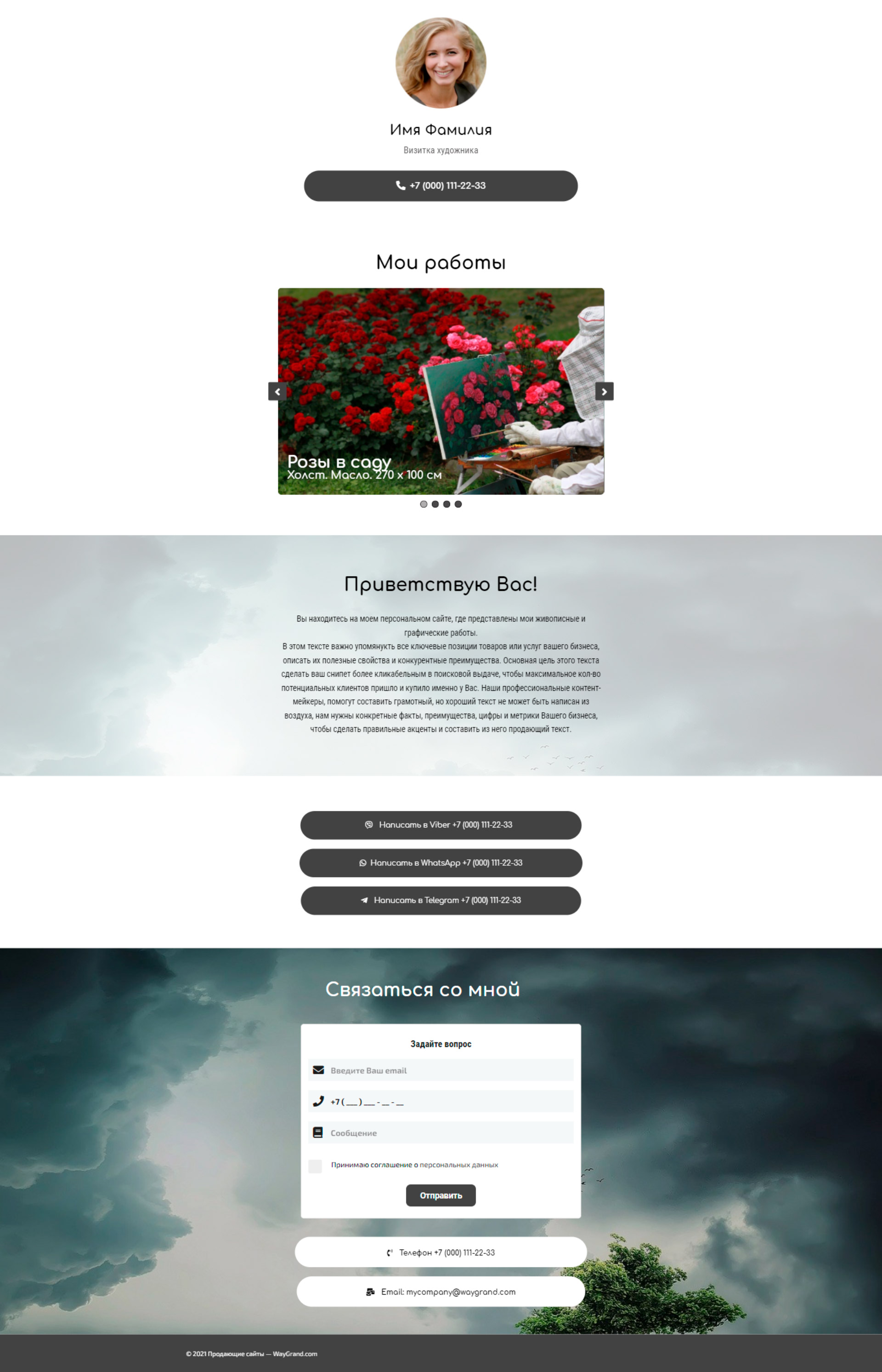 Закажите готовый продающий сайт визитка #0826101 в Воронеже за 5-7 дня «под ключ»: свёрстан, отрисован и готов к рекламе. Тематика шаблона «Визитка художника».