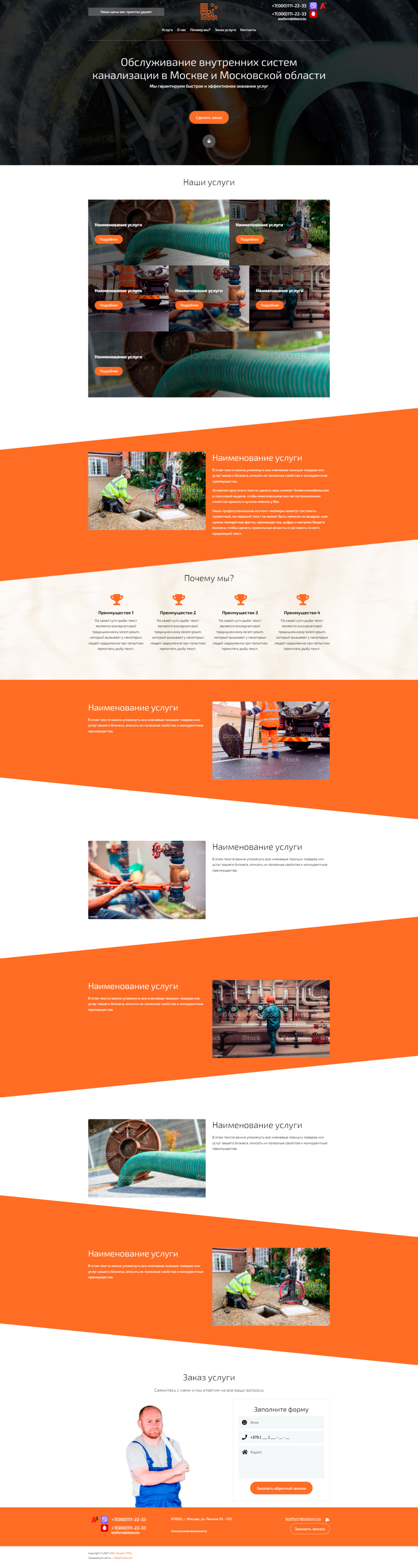 Закажите готовый продающий сайт лендинг #2137202 в Воронеже за 1-3 дня «под ключ»: свёрстан, отрисован и готов к рекламе. Тематика шаблона «Обслуживание внутренних систем канализации».