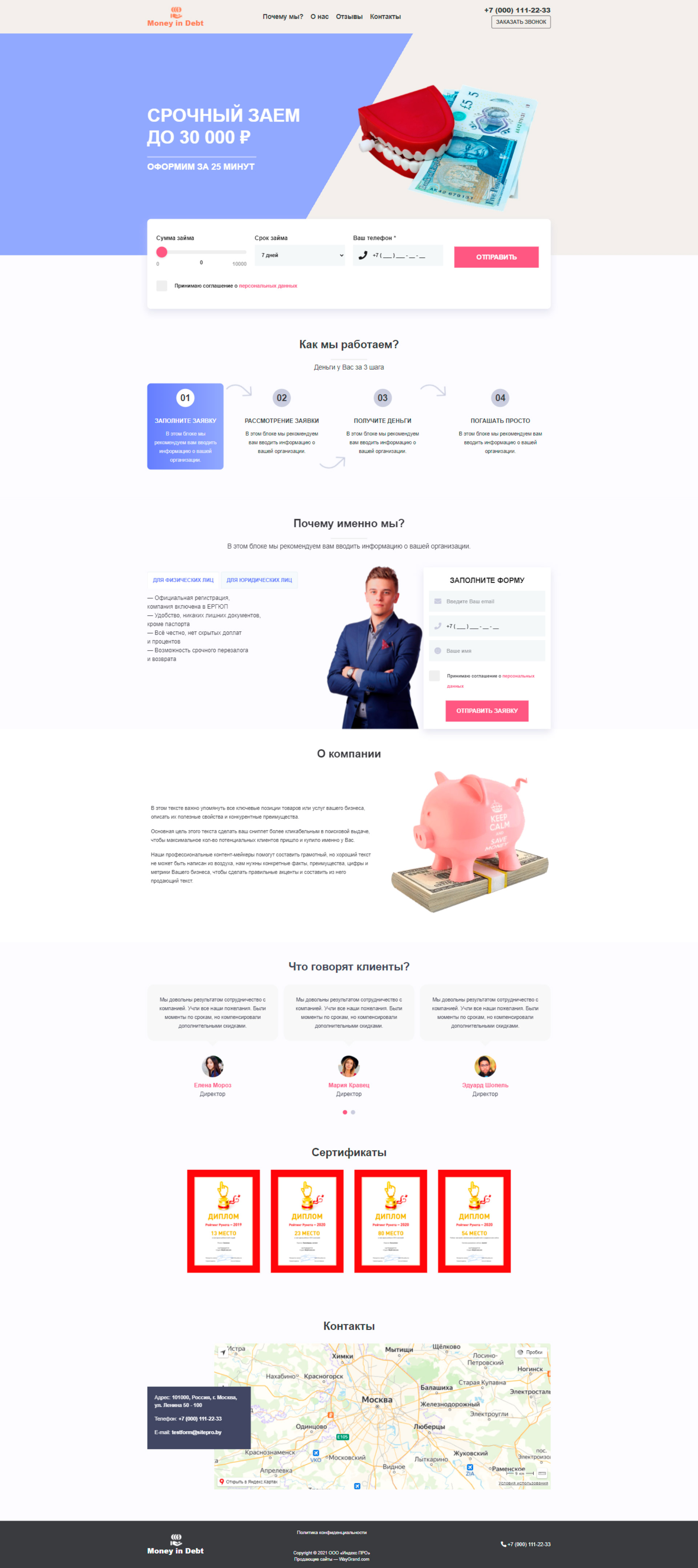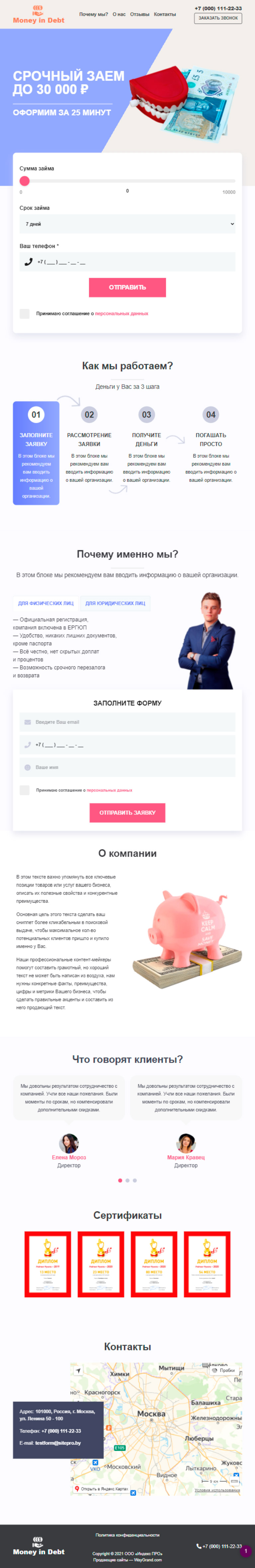 Закажите готовый продающий сайт лендинг #2825202 в Воронеже за 1-3 дня «под ключ»: свёрстан, отрисован и готов к рекламе. Тематика шаблона «Деньги в долг».