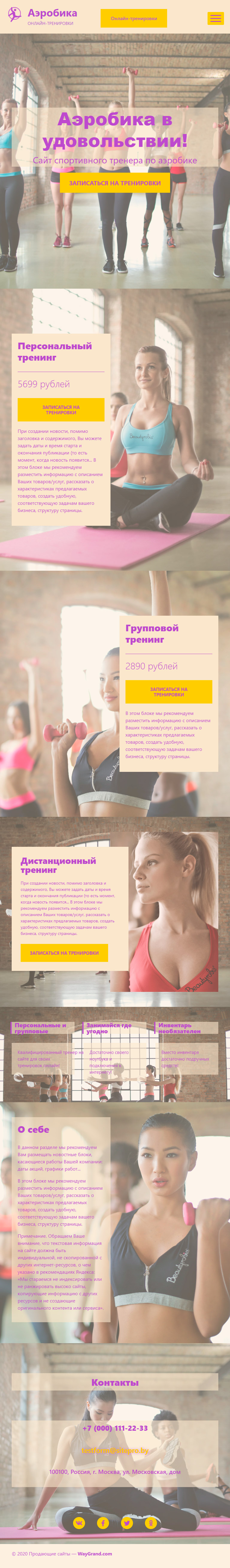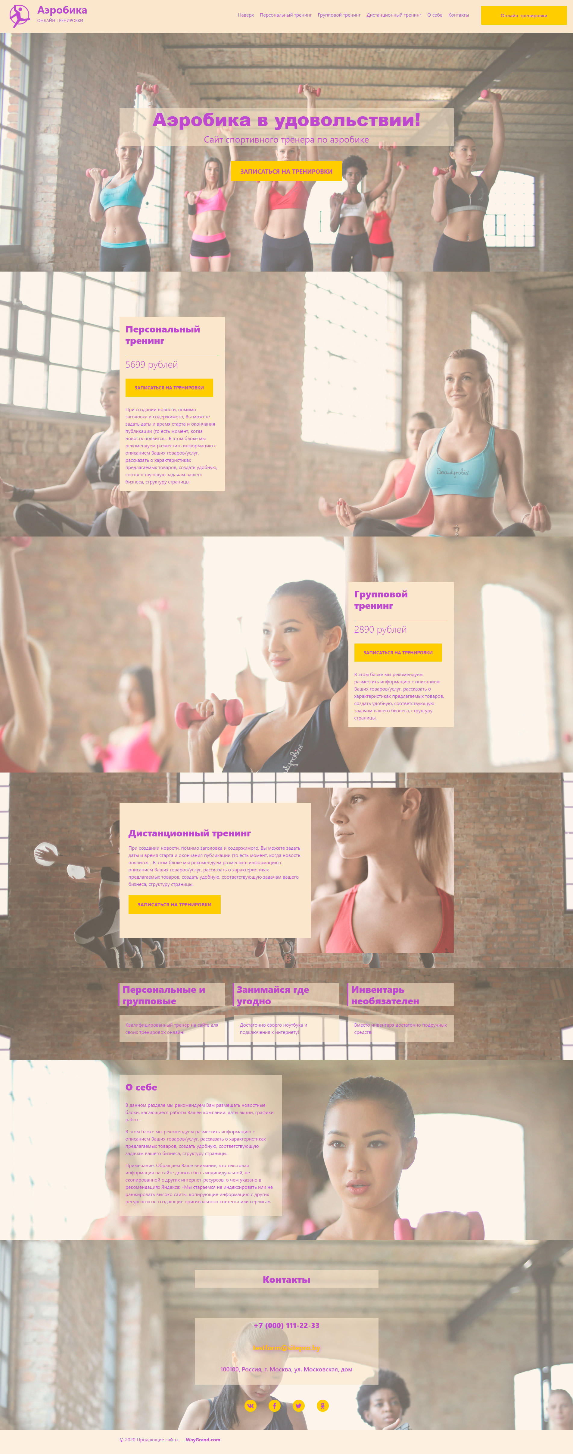 Закажите готовый продающий сайт лендинг #1955207 в Воронеже за 1-3 дня «под ключ»: свёрстан, отрисован и готов к рекламе. Тематика шаблона «Аэробика онлайн тренировки».
