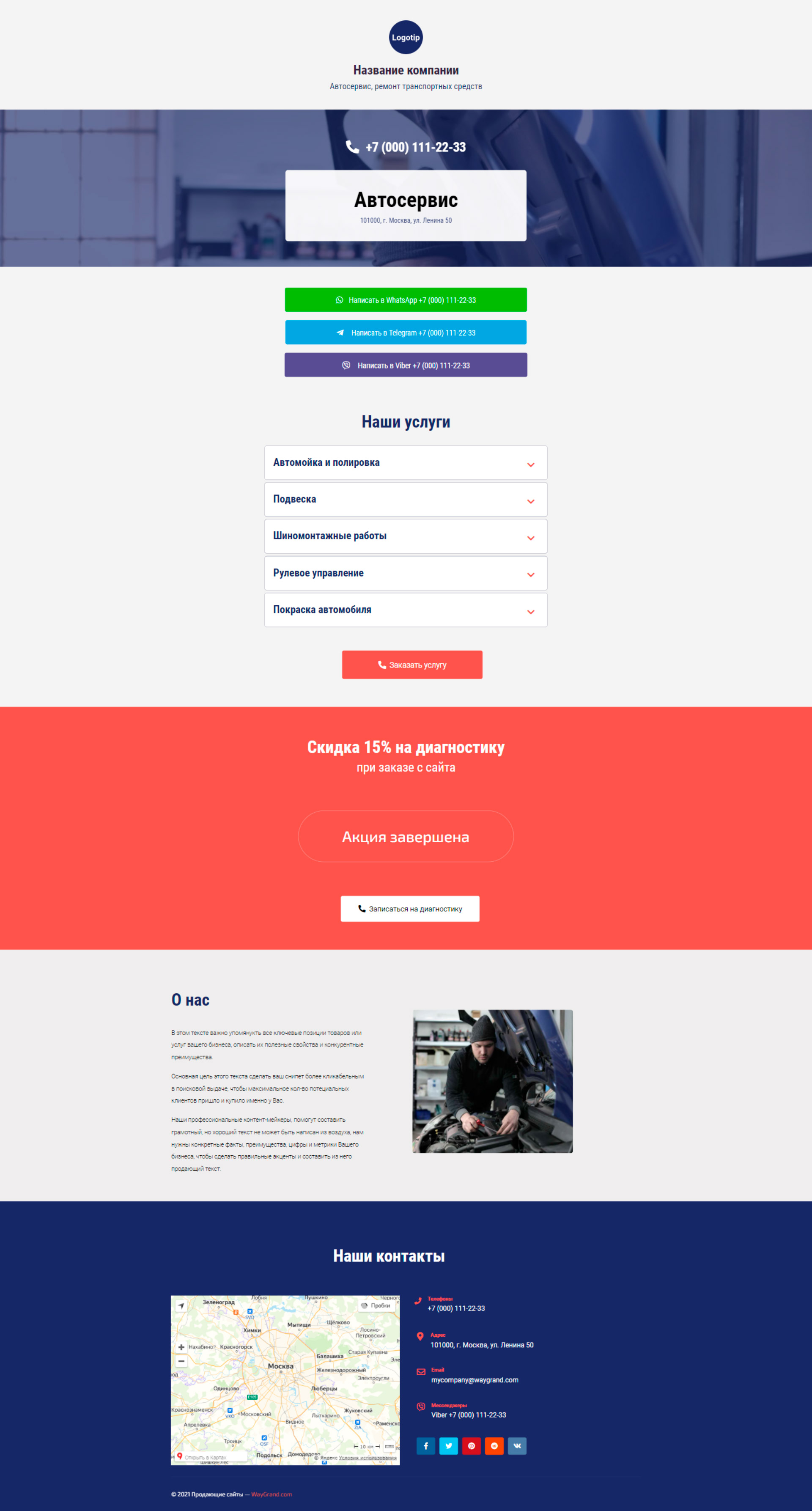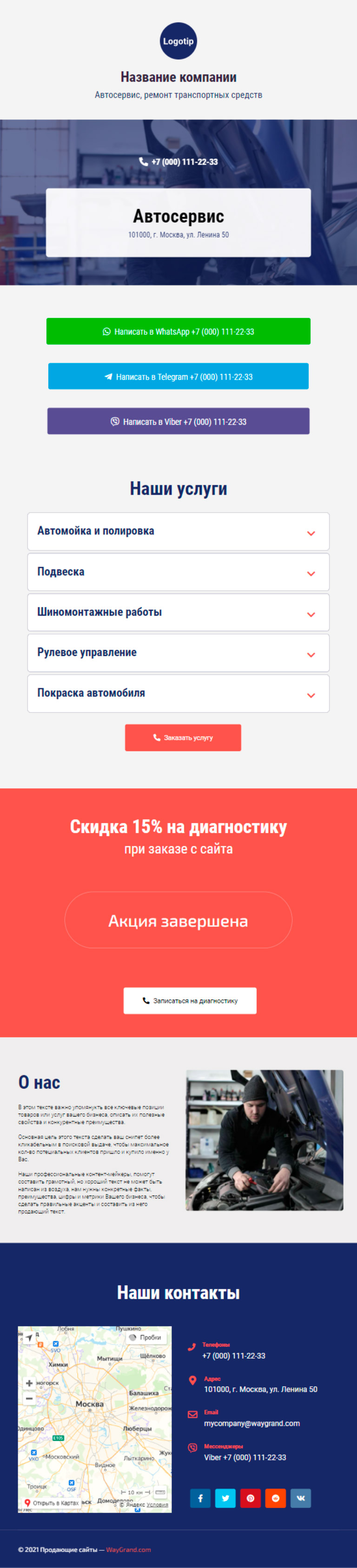 Закажите готовый продающий сайт визитка #0210101 в Воронеже за 5-7 дня «под ключ»: свёрстан, отрисован и готов к рекламе. Тематика шаблона «Автосервис, ремонт транспортных средств».