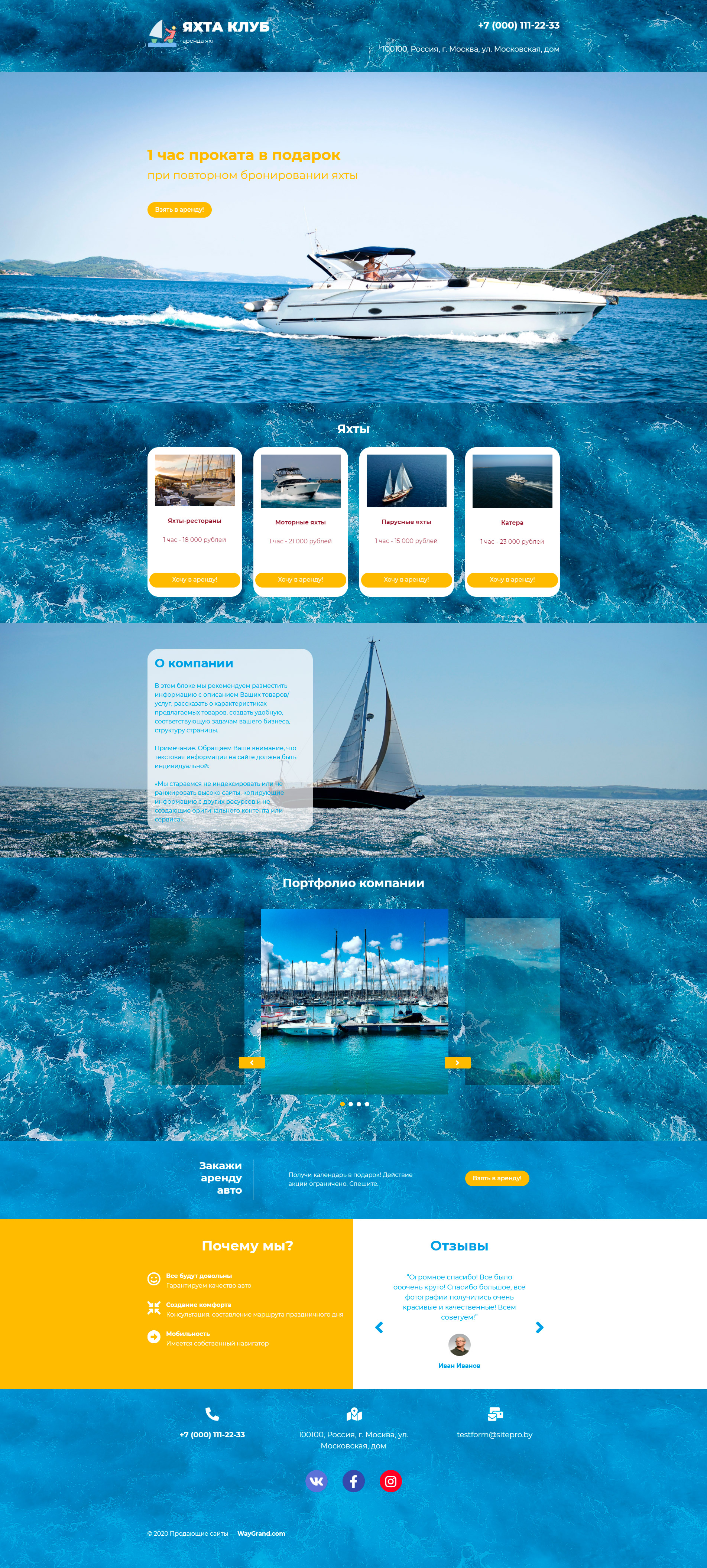 Закажите готовый продающий сайт лендинг #1958201 в Воронеже за 1-3 дня «под ключ»: свёрстан, отрисован и готов к рекламе. Тематика шаблона «Яхт-клуб (аренда яхт)».