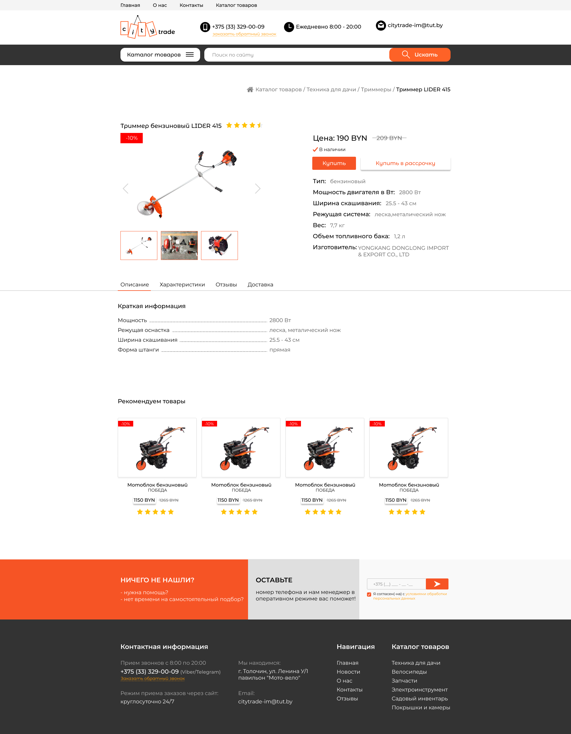 Закажите готовый продающий сайт визитка #281 в Воронеже за 5-7 дня «под ключ»: свёрстан, отрисован и готов к рекламе. Тематика шаблона «Розничная продажа садовой техники, велосипедов».