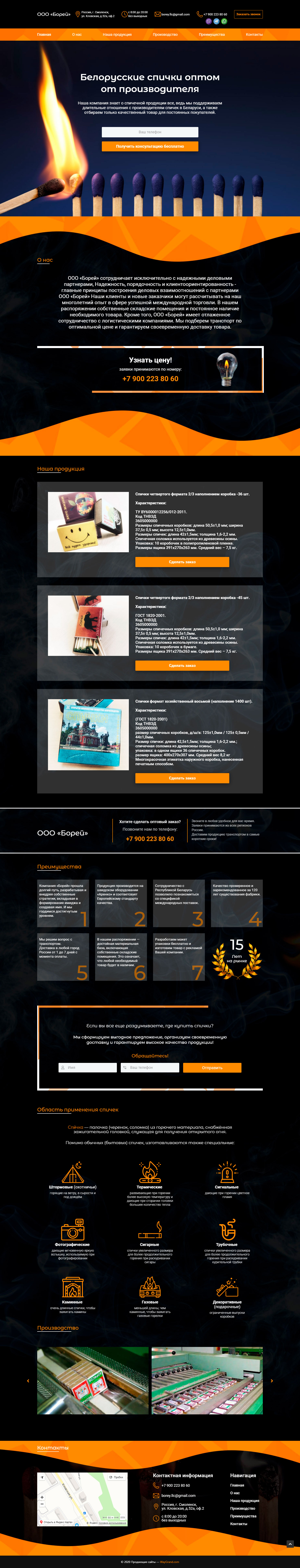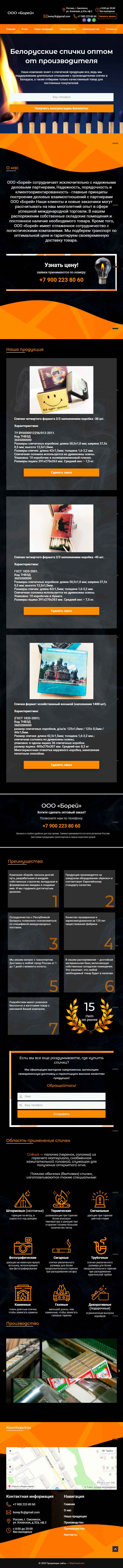 Закажите готовый продающий сайт лендинг #115 в Воронеже за 1-3 дня «под ключ»: свёрстан, отрисован и готов к рекламе. Тематика шаблона «Белорусские спички оптом от производителя».