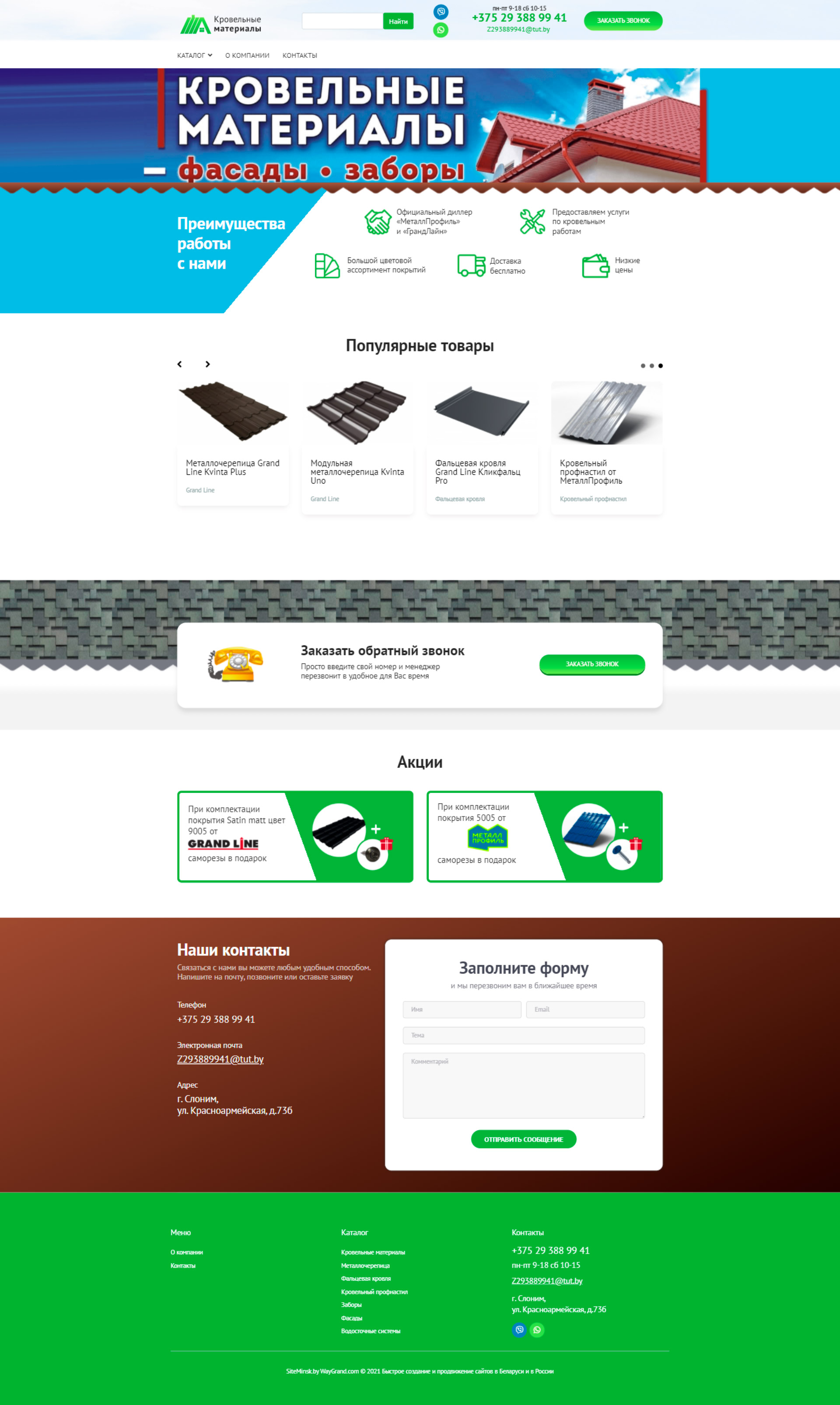 Закажите готовый продающий сайт визитка #324 в Воронеже «под ключ» на waygrand по выгодной цене: свёрстан, отрисован и готов к рекламе. Тематика шаблона «Кровельные материалы».