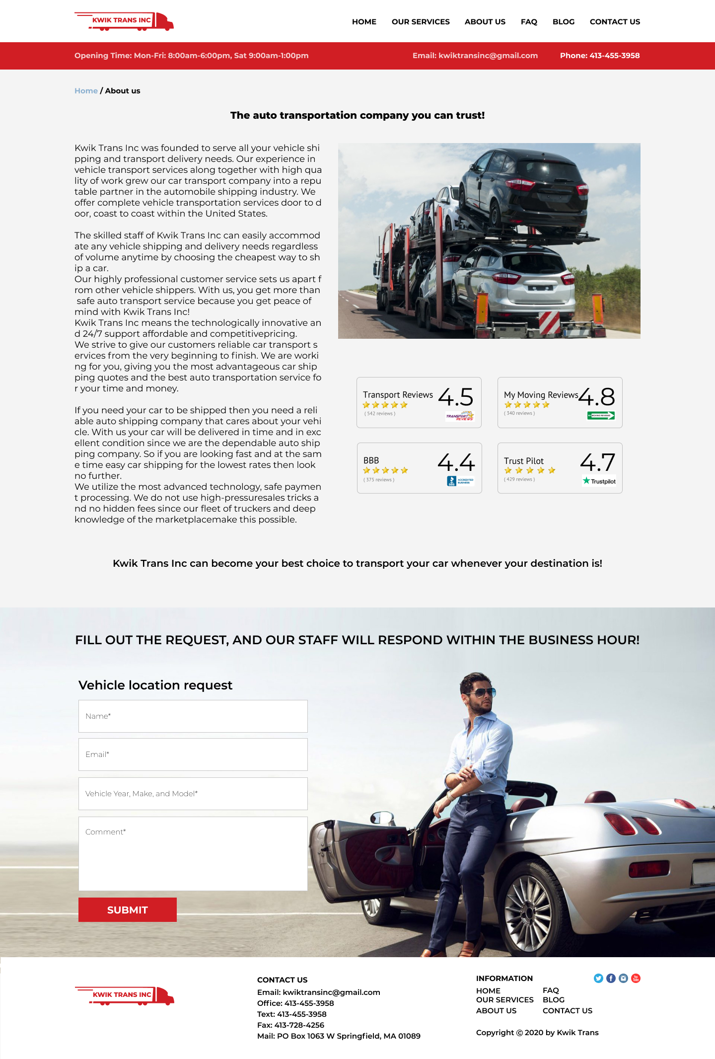 Закажите готовый продающий сайт визитка #223 в Воронеже за 5-7 дня «под ключ»: свёрстан, отрисован и готов к рекламе. Тематика шаблона «Safe & Reliable National Auto Transport».